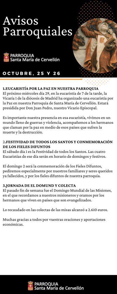 Avisos Parroquiales: 25 y 26 Octubre