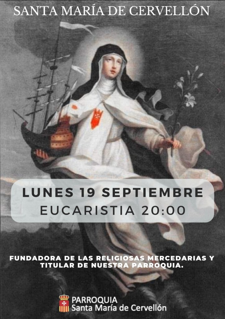 El próximo lunes día 19 es la fiesta de Santa María de Cervellón, fundadora de las religiosas mercedarias y titular de nuestra Parroquia.
