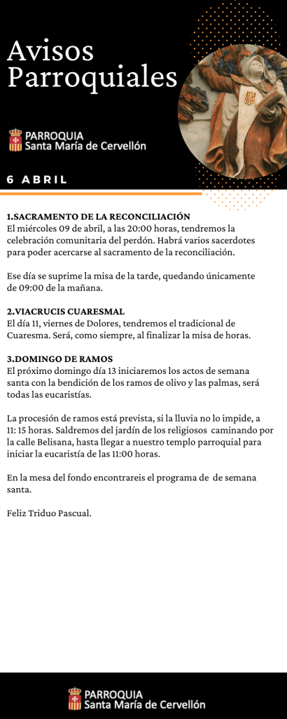 Cada viernes de Cuaresma de 2025 brinda una oportunidad excepcional para la reflexión y la unión a través de la hermosa tradición del Viacrucis. Estos encuentros, que tienen lugar a las 19:30 o 20:30 horas, son guiados por diversos grupos parroquiales, cada uno de los cuales aporta su singular esencia y perspectiva a la celebración: